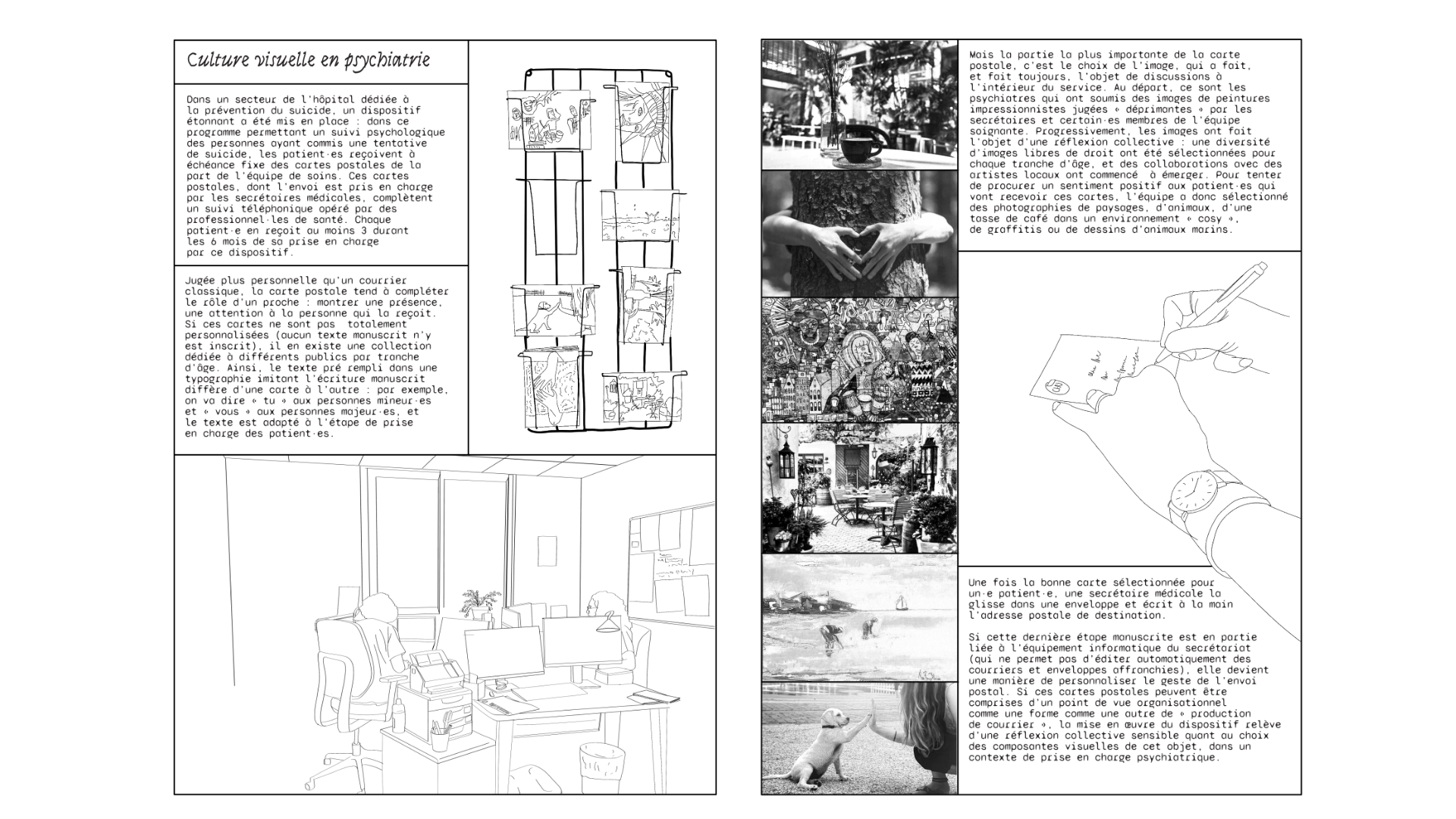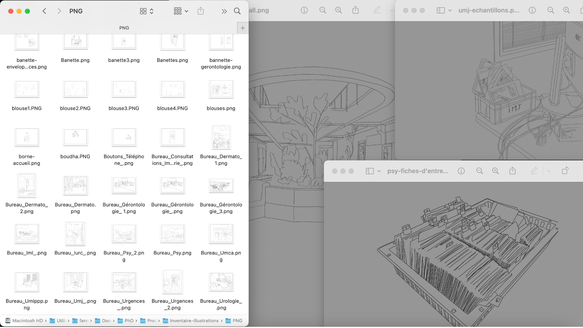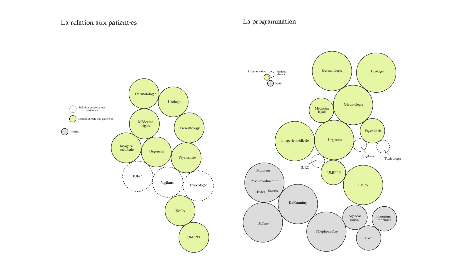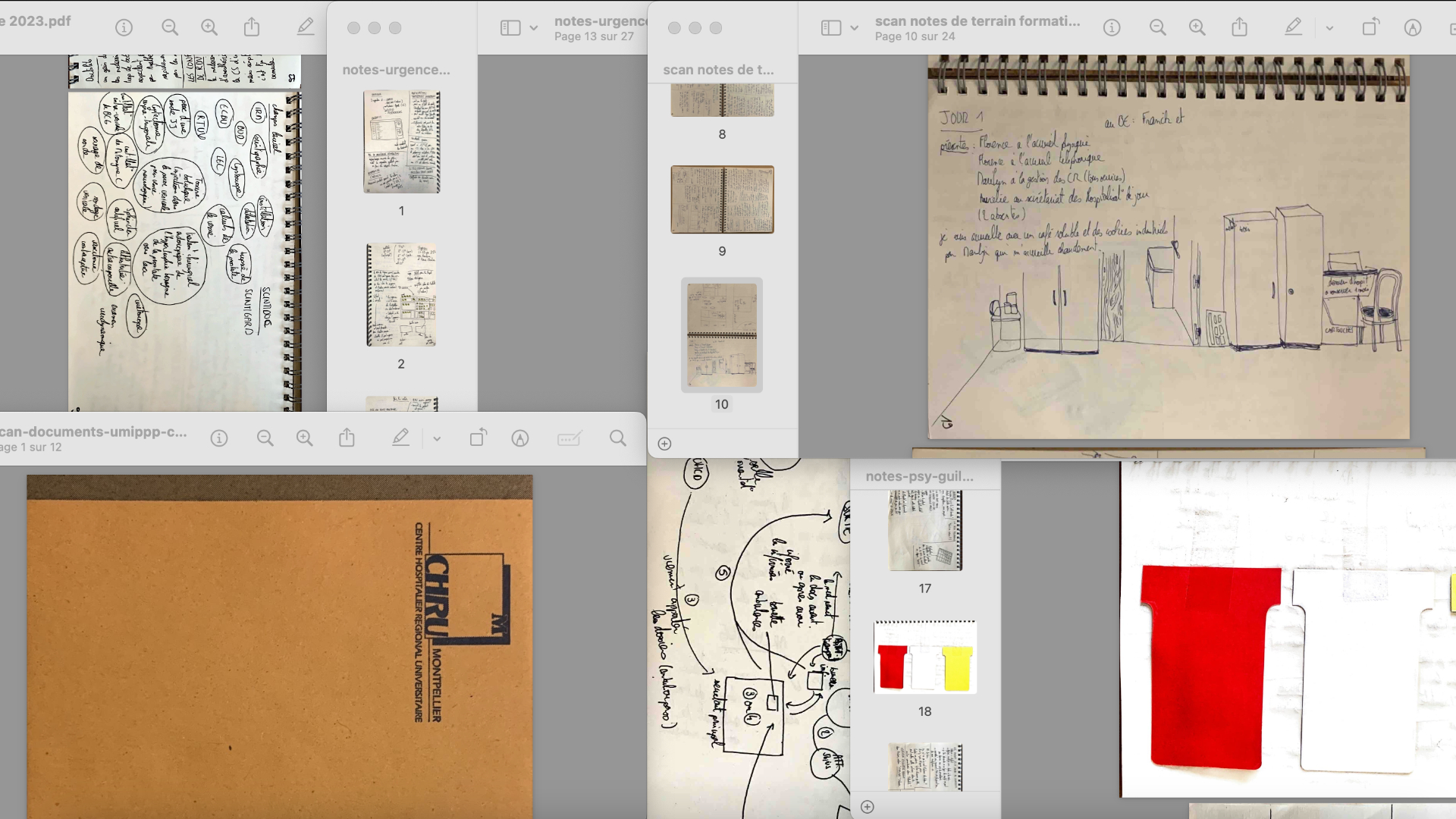 Ce chapitre revient sur les conditions particulièrement de cette enquête, en décrivant les modalités d’accès au terrain et la relation progressivement tissée avec les personnes enquêtées, qui m'a permis d'apercevoir une infrastructure hospitalière depuis ses espaces les plus discrets. Le texte s’arrête ensuite sur les « blancs » de l’enquête — absences de données, silences, angles morts — envisagés non comme des manques, mais comme des éléments constitutifs d’une compréhension située des infrastructures. Il explore enfin les enjeux d’une méthodologie dite « inventive », qui accorde une place centrale à la production de représentations graphiques et à l’usage du dessin comme outil de description ethnographique.
